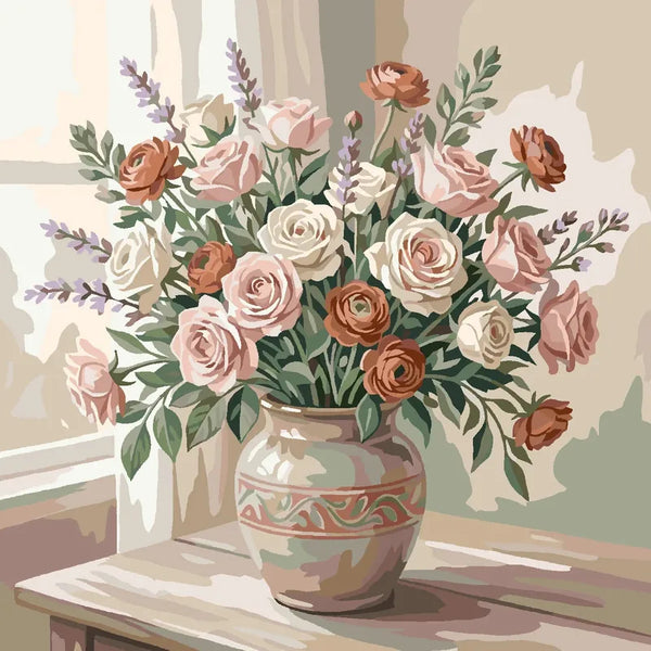Roses in Ceramic Vase 50x50cm - Paint By Numbers